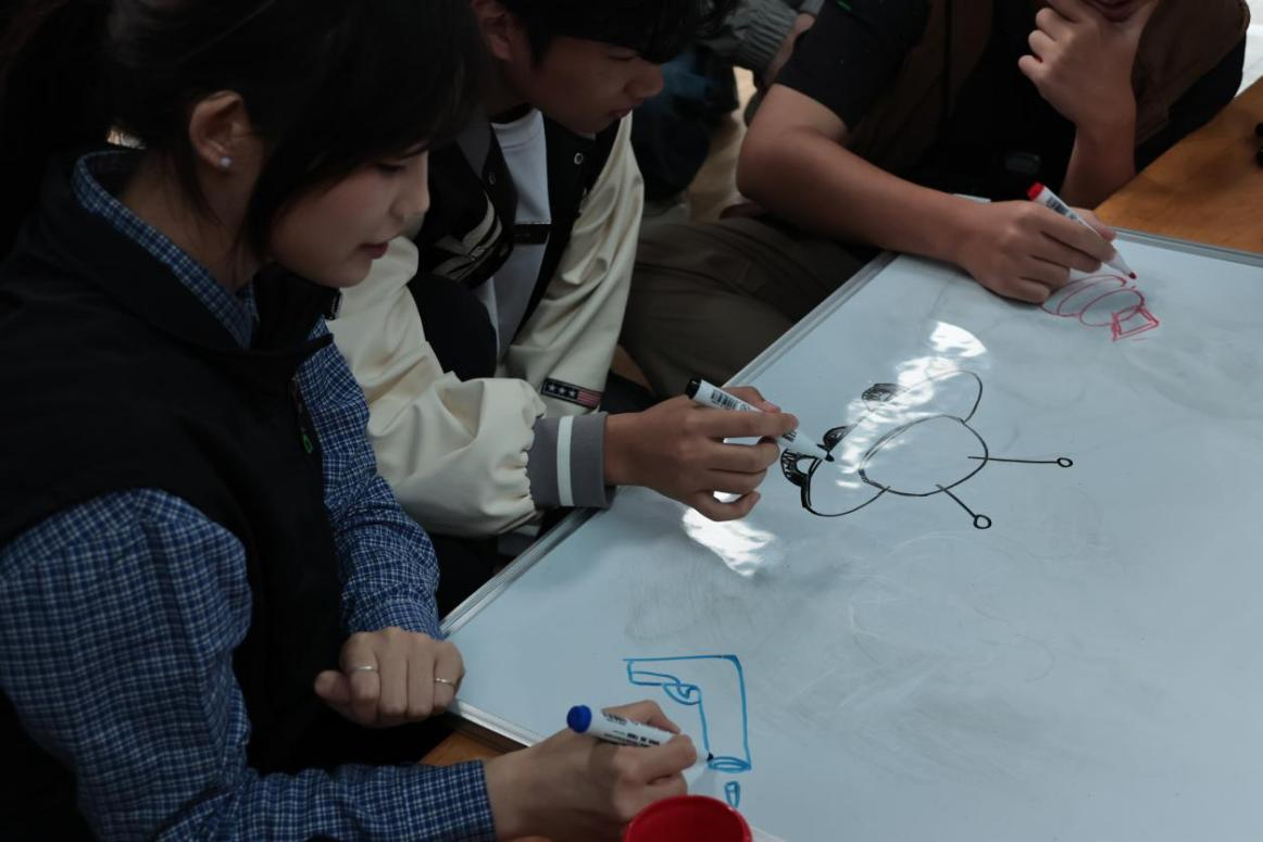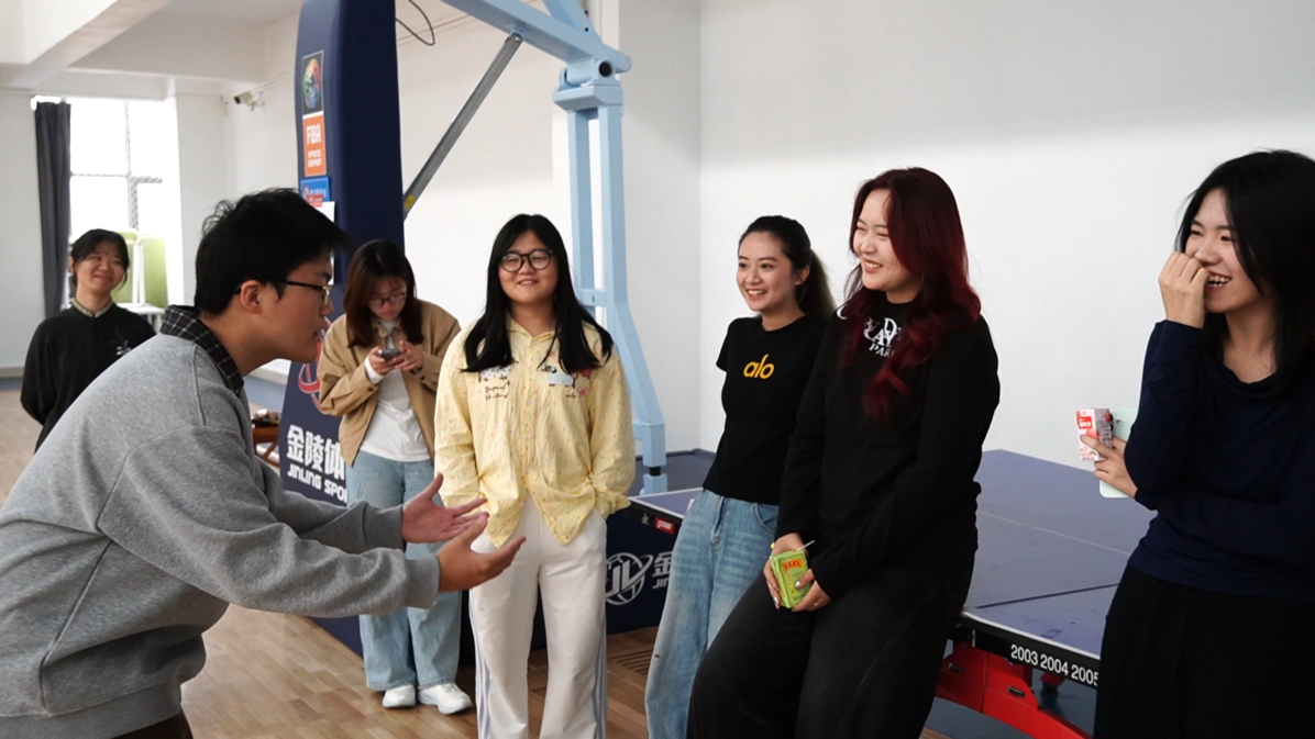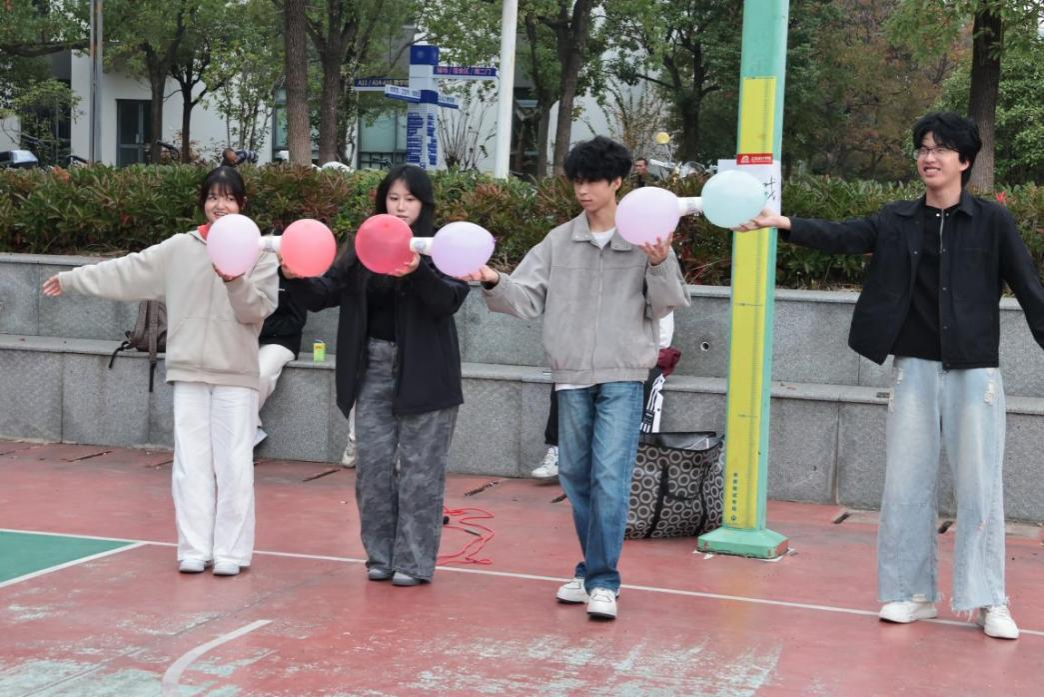 活动紧扣“五育融合”主题,精心设计了互动环节。“设计盲盒接力”要求成员蒙眼描述并协作绘图,语言与想象相互碰撞,激发无限乐趣;“同心协力闯关”则通过跳绳、运杯、拼图等多重任务,强化体能锻炼,引导学生在挑战中锤炼意志,彰显体育与德育的深度融合;“设计故事接龙”环节,学生们以专业为纽带,将个人灵感串联成集体叙事,在艺术表达中深化情感共鸣,既提升了专业认同,也构建了朋辈心理支持网络;“心能量补给站”以轻松的心理知识问答和能量物资分发,为学生提供即时情绪调节支持,潜移默化传递积极心态培育方法。