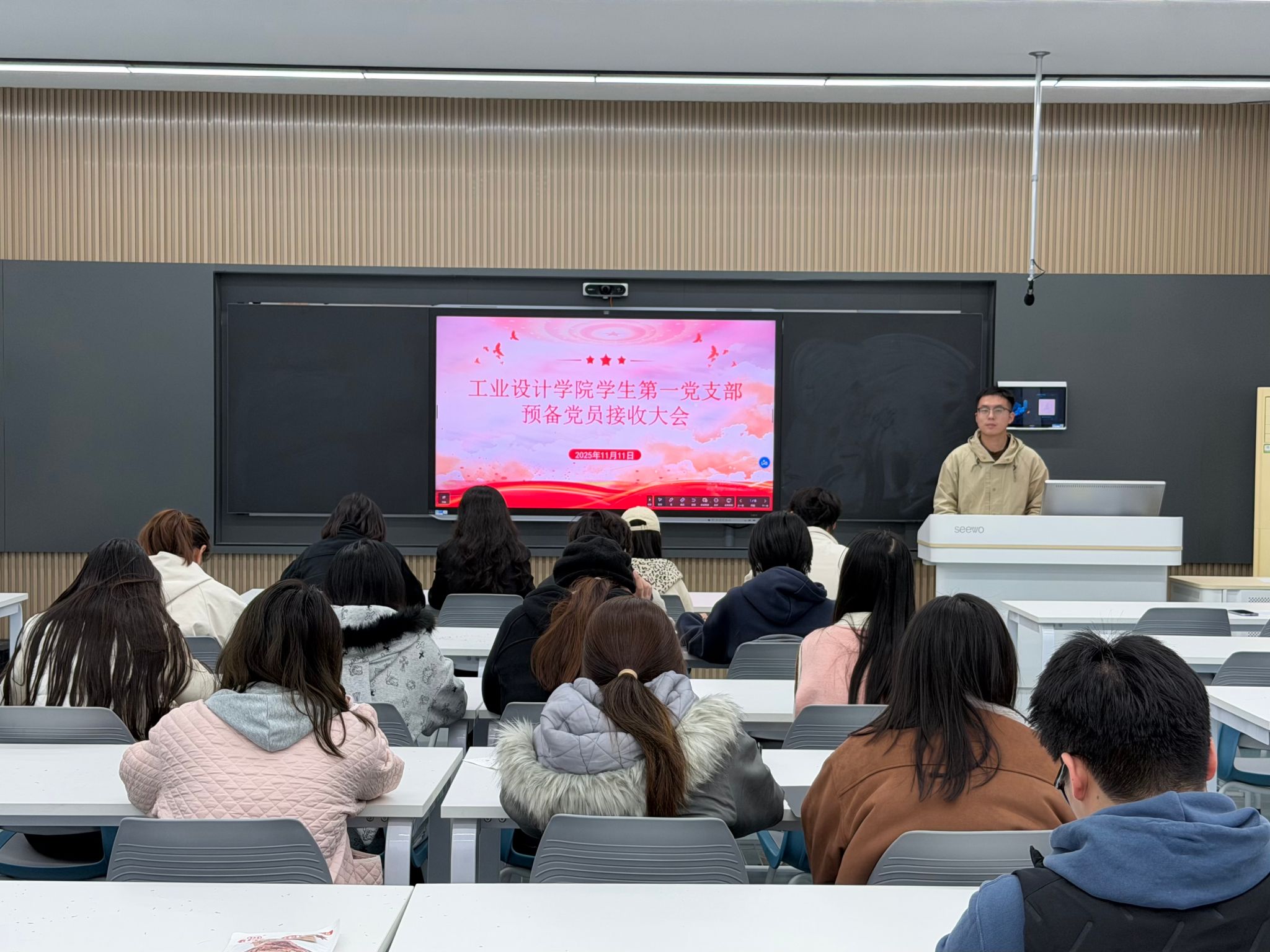 11月11日下午,必威唯一官方网站学生第一党支部在A6教学楼203会议室召开预备党员接收大会,支部书记李洋主持会议。