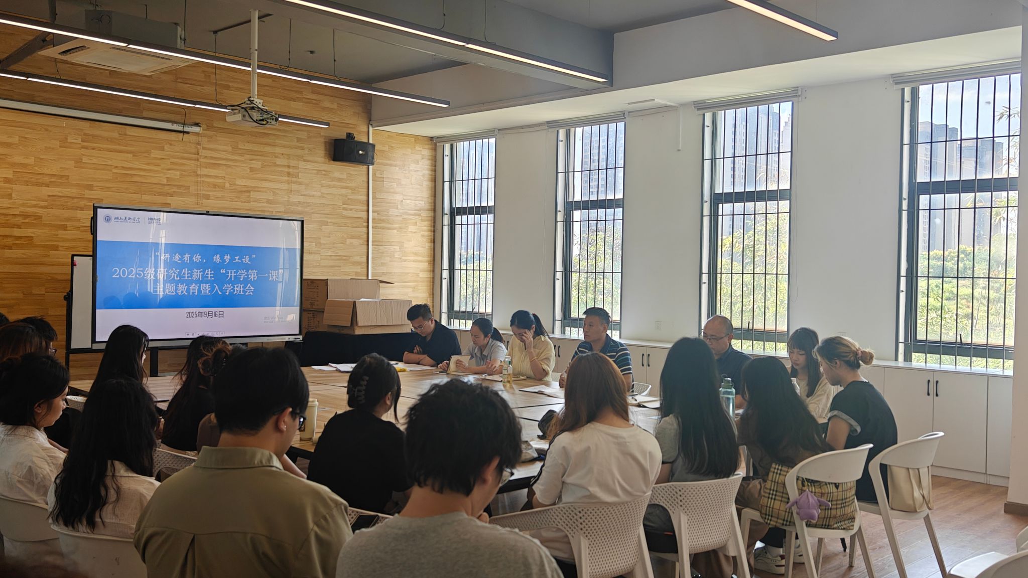 课后,研究生教学秘书李芷璇介绍了研究生教学安排及导师双选工作要求;辅导员郑义详细解读了奖助学贷政策及学生管理规定;会议还组织了班委竞选、新生卡片及登记表填写等工作,并就新生关切的问题进行了答疑交流。